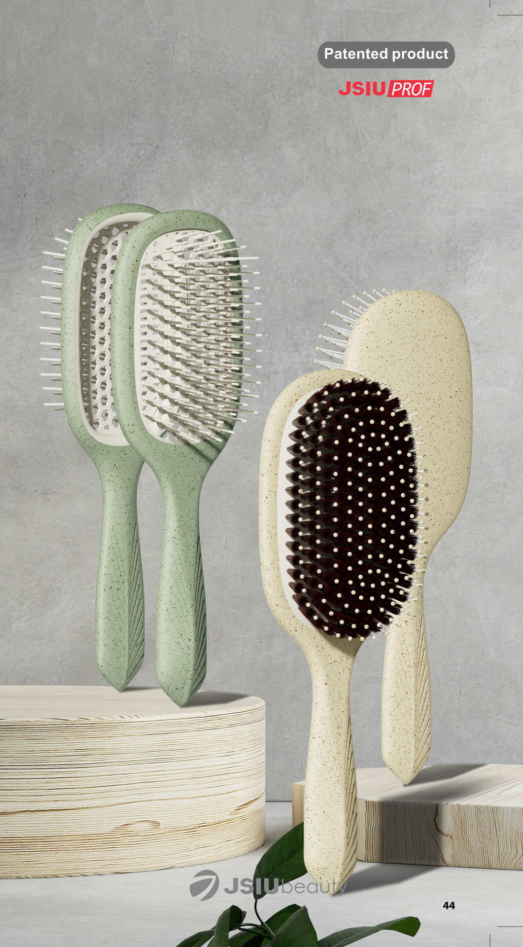 Introducing the EcoLeaf Sustainable Brush Collection, crafted from Post-Consumer Recycled (PCR) materials for the environmentally conscious consumer. This series combines exceptional performance with sustainability, helping you meet ESG commitments. Made entirely from eco-friendly PCR materials, reducing environmental impact. The versatile brush selection includes cushion detanglers, vented detanglers, small vented detanglers with boar bristles, and round brushes to cater to various hair care needs. Handles feature an intricate leaf vein carving, enhancing grip and emphasizing the eco-friendly concept.