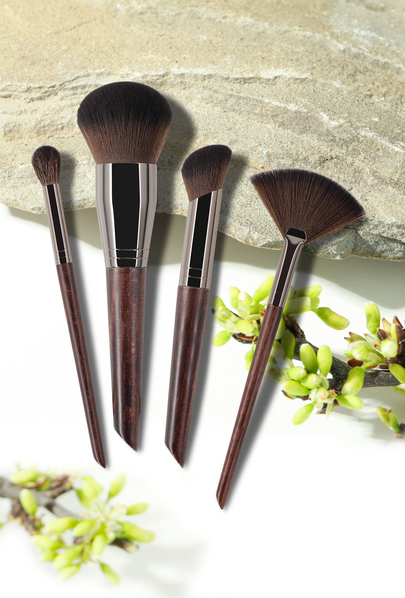 Unique luxury walnut cosmetic brushes. The makeup brush set is a beautiful addition and a fantastic value to your collection. Manufactured with noble walnut handles that are exquisite material, touch smooth, abrasion and corrosion resistant, with soft synthetic bristles. Cutting-edge exclusive NO-Shed synthetic bristles make your face healthier. All brushes are gentle on the skin, thick, and velvety — your wonderful partner in liquids, creams, and powders. Cruelty-free and vegan, printed with soy ink, FSC certified.